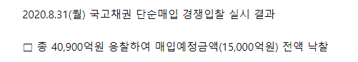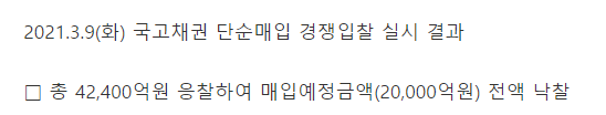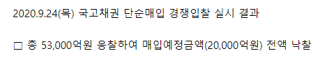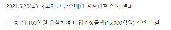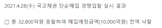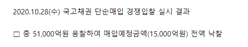 아래 캡쳐사진에서 한국은행의 국고채 매입 입찰 결과를 보면 정부의 의도를 알 수 있습니다.