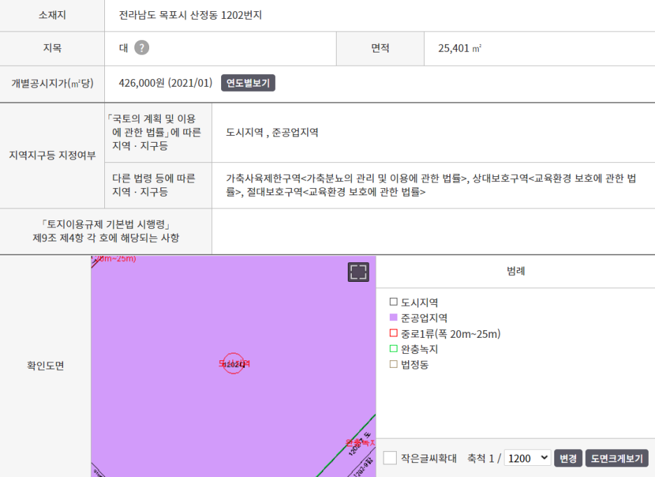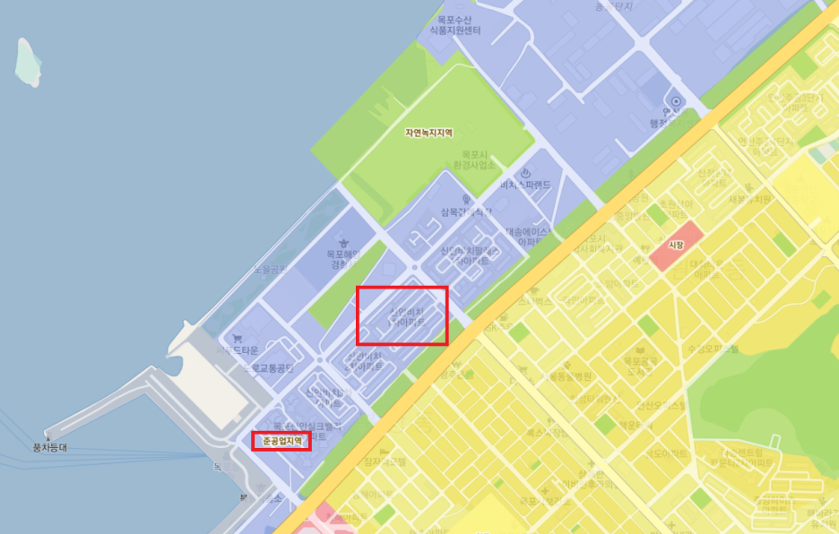하지만 신안비치1차 아파트의 용도지역은 '준공업지역' 입니다.