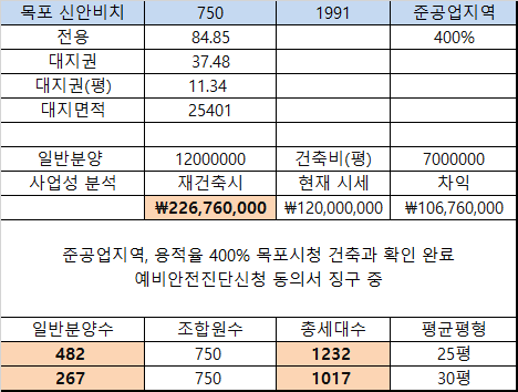 신안비치1차 아파트는 1991년 준공으로 재건축 가능연한을 넘어 섰고, 용도지역은 준공업지역으로 용적율을 400%까지 올릴 수 있습니다.