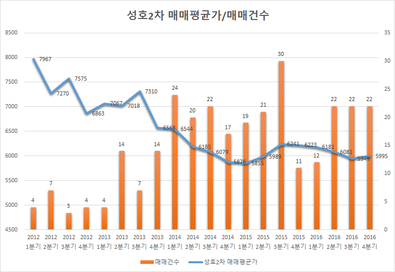 ▶ 2016년 공급이 많아 공실이 많았으나, 가격은 바닥을 다지는 모습이었습니다.