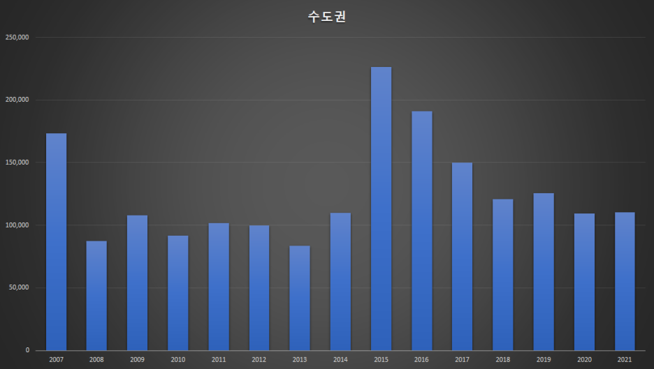 2021년이 역대급 상승장 이었음에도 인허가 물량의 급격한 증가는 없었습니다.