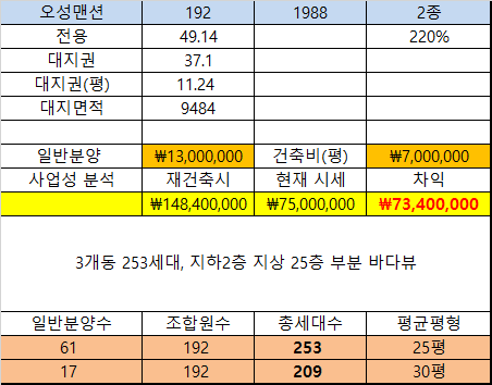 사업성 분석(오성맨션)