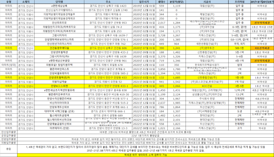▶ 향 후 2-3년간의 인근 지역(안산.군포.안양.의왕) 역세권 입주단지 거의 없음