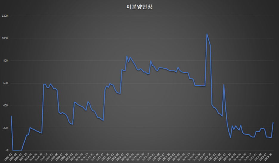 2016년 이 후 미분양수치 의미 없음. 신축 희소성은 여전히 진행 중
