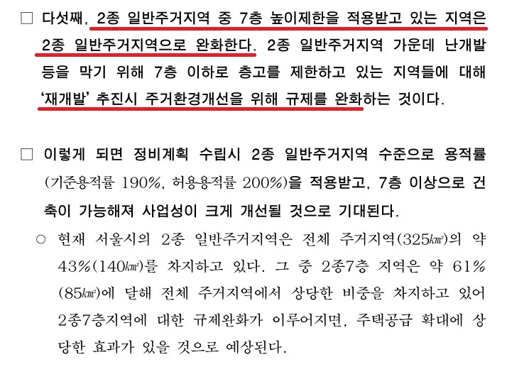 ▶ 규제로 저평가 받았던 제2종일반주거지역(7층이하)의 규제완화 움직임