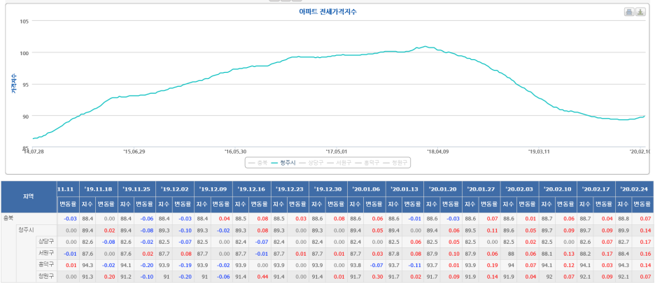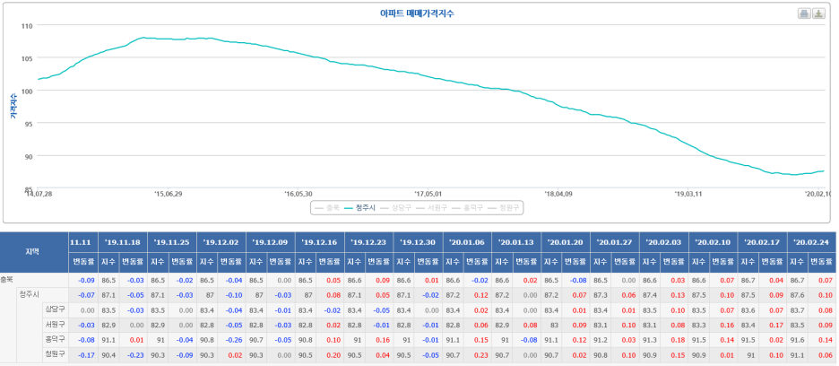 ▶ 2020년 상반기 예상보다 빠른 청주시장 과열로 조정지역지정되며 시장 냉각