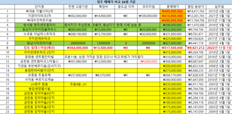 ▶ 투자 당시 상승 예상했던 21년초부터 분양권, 선호단지 위주로 청주시장 반등