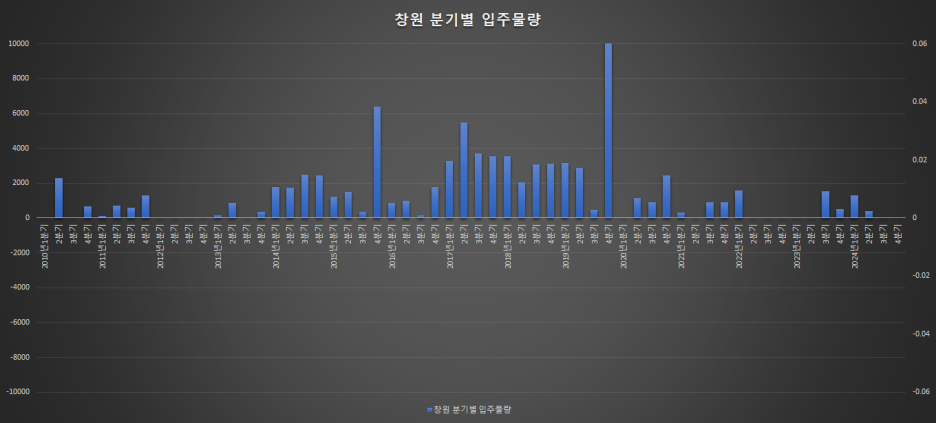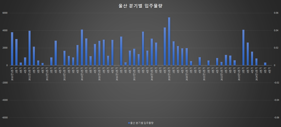 오랜 침체기를 겪었던 창원.김해.양산.울산 모두 입주물량이 적다.