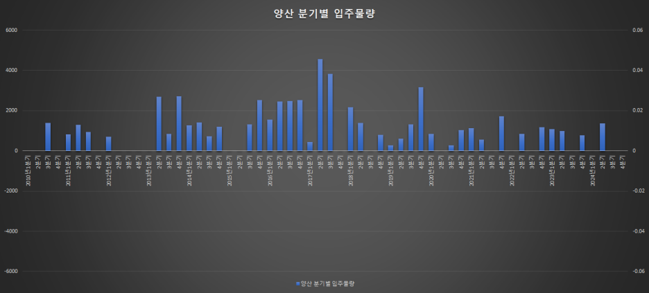 앞에서 확인해본 동부산. 이번 서부산권 모두 입주물량이 없다.